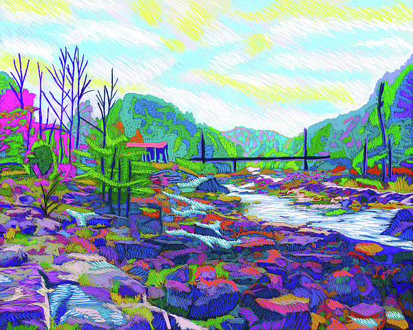 Purchase a tote bag featuring the painting "Appalachian Mountain Stream" by Rod Whyte. Our tote bags are made from soft, durable, poly-poplin fabric and include a 1" black strap for easy carrying on your shoulder. All seams are double-stitched for added durability. Each tote bag is machine-washable in cold water and is printed on both sides using the same image.